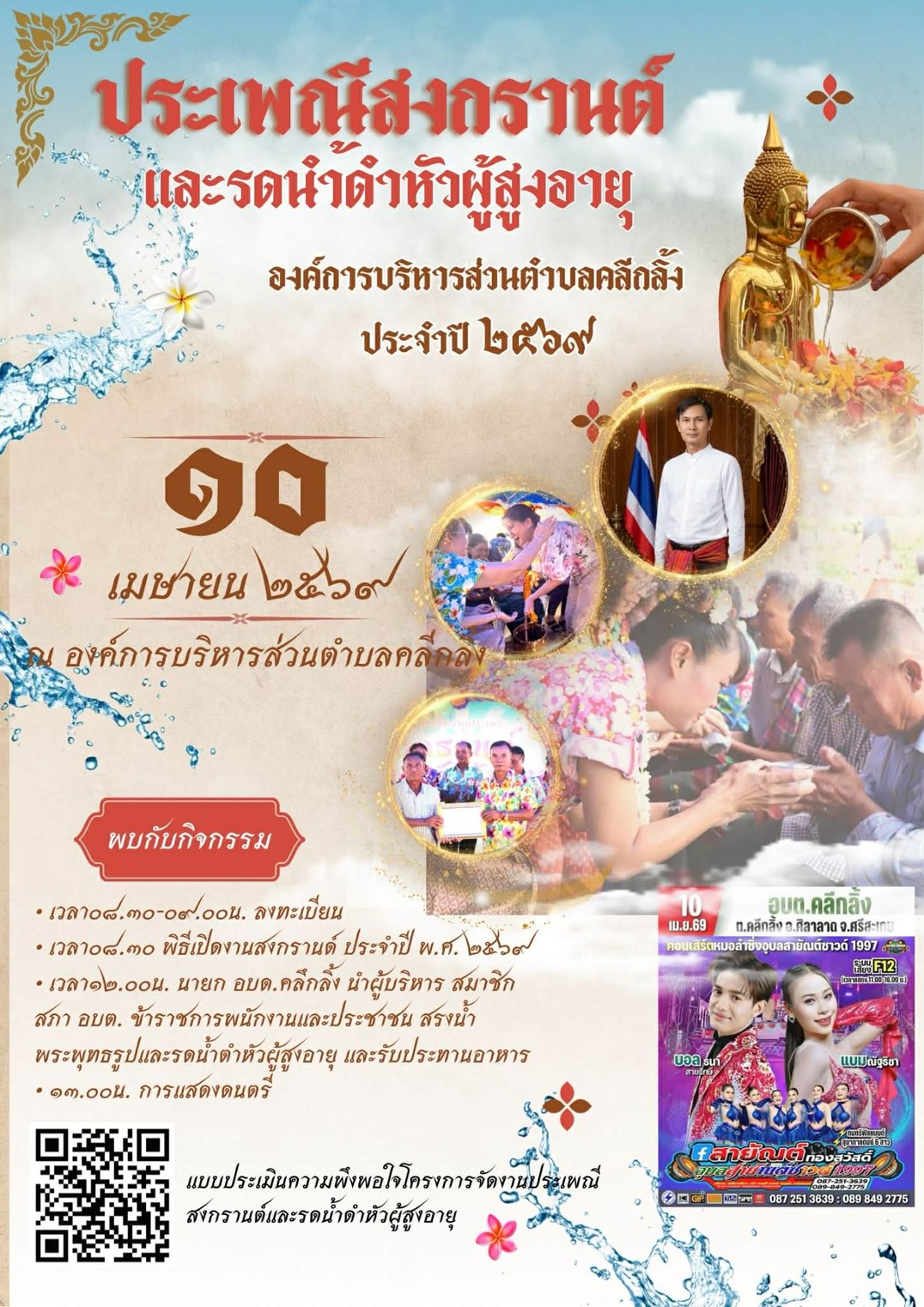 องค์การบริหารส่วนตำบลคลีกลิ้ง กำหนดจัดงานประเพณีสงกรานต์และรดน้ำดำหัวผู้สูงอายุ ประจำปี 2569 ในวันศุกร์ที่ 10 เมษายน 2569